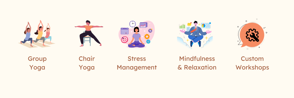 Rooted in ancient yogic philosophy, our workplace wellness workshops empower your team to harmonize body, mind, and soul—creating a balanced, productive, and thriving work environment